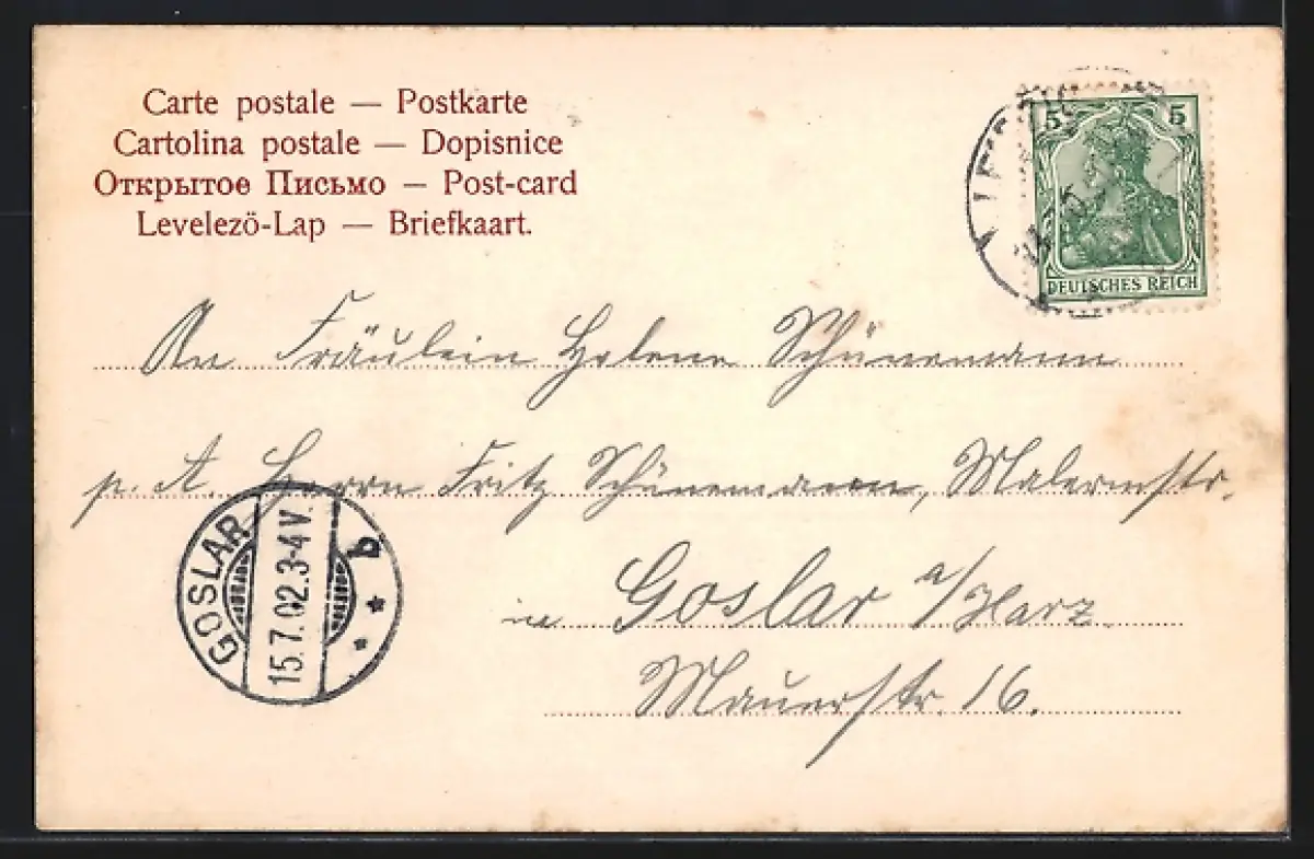 alte Ansichtskarte, gelaufen 1902, Stempelspur, guter Zustand