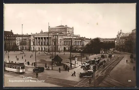 AK Leipzig, Augustusplatz und Neues Theater, Strassenbahn