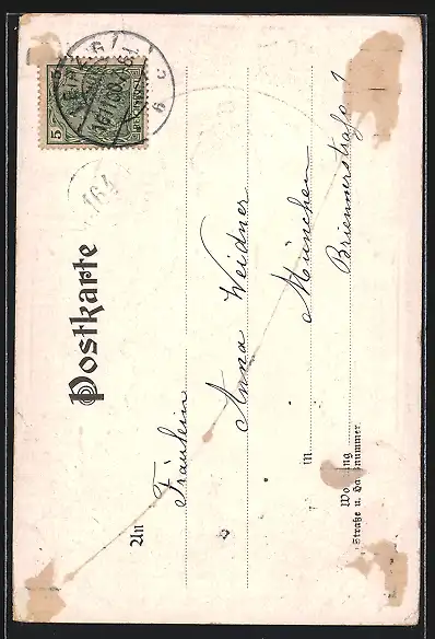 alte Ansichtskarte, gelaufen 1900, rückseitig Klebe- und Papierreste, guter Zustand