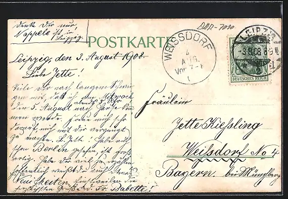 alte Ansichtskarte, gelaufen 1908, Stempelspur, guter Zustand
