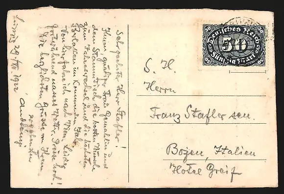 gelaufen 1922, leichter Kantenschaden oben, guter Zustand