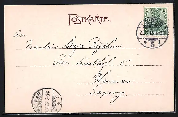 alte Ansichtskarte, gelaufen 1902, guter Zustand