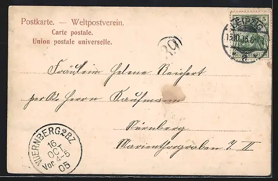 alte Ansichtskarte, gelaufen 1905, Ecken bestoßen, guter Zustand