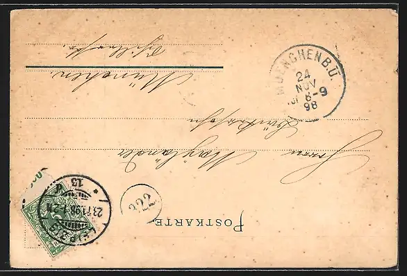 alte Ansichtskarte, gelaufen 1898, guter Zustand