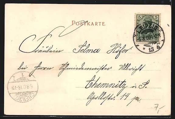 alte Ansichtskarte, gelaufen 1900, guter Zustand