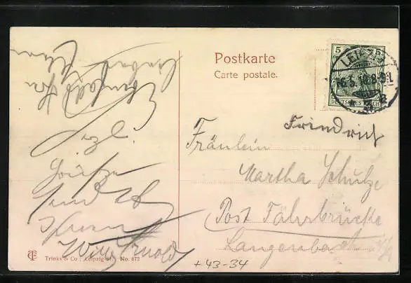alte Ansichtskarte, gelaufen 1910, Stempelspur, guter Zustand