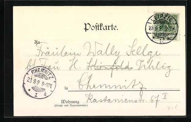 alte Ansichtskarte, gelaufen 1897, Stempelspur, guter Zustand