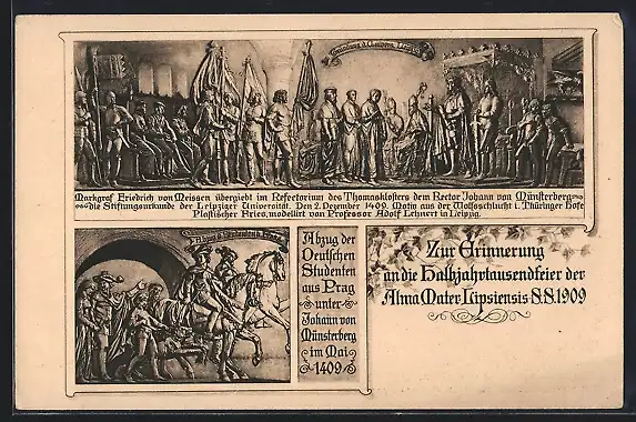 AK Leipzig, Halbjahrtausendfeier der Alma Mater Lipsiensis 1909, Reliefs