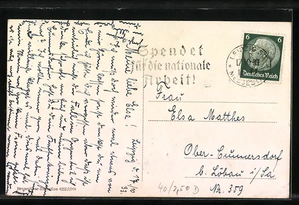 alte Ansichtskarte, gelaufen 1933, Eckknick li. unten, guter Zustand