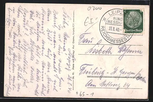 alte Ansichtskarte, gelaufen 1940, Bugspur oben mittig, guter Zustand
