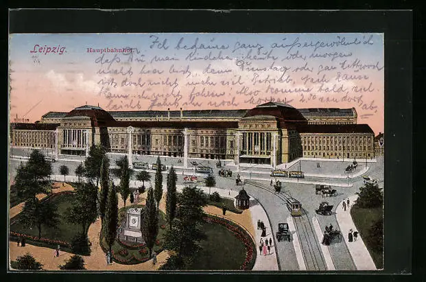 AK Leipzig, Hauptbahnhof aus der Vogelschau