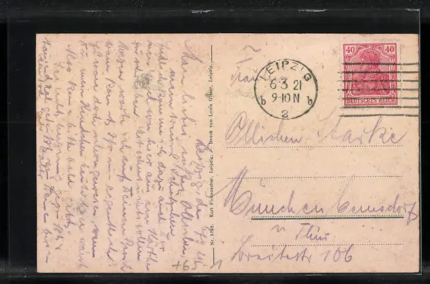 alte Ansichtskarte, gelaufen 1921, Stempelspur, guter Zustand
