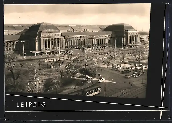 AK Leipzig, Hauptbahnhof aus der Vogelschau, Strassenbahn
