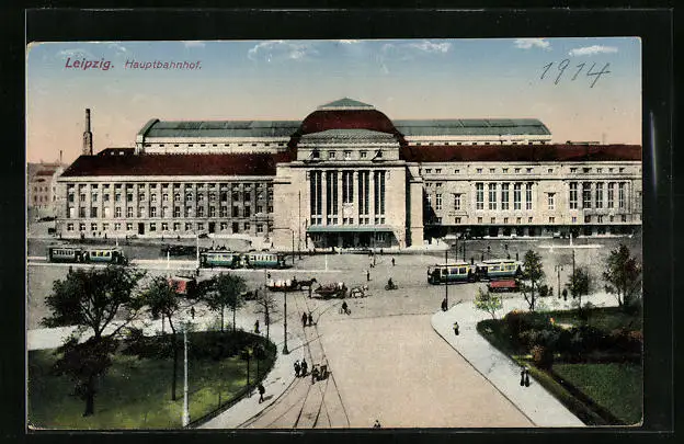 AK Leipzig, Hauptbahnhof mit Strassenbahn