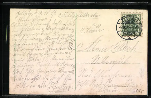 alte Ansichtskarte, gelaufen 1914, rückseitig Oberflächenschaden, guter Zustand