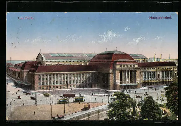 AK Leipzig, Hauptbahnhof mit Strassenbahn
