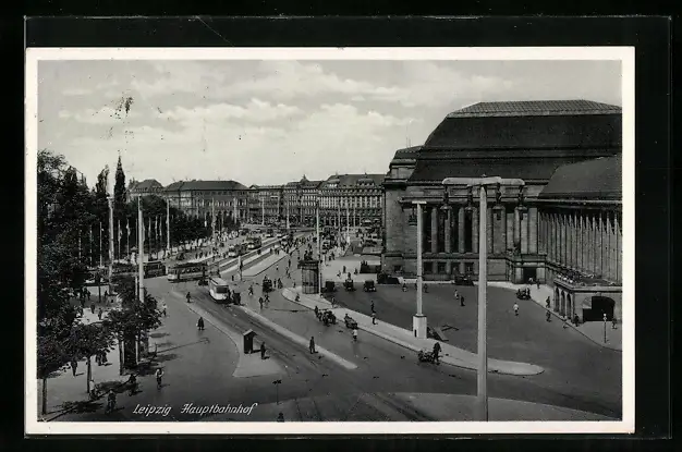 AK Leipzig, Hauptbahnhof mit Strassenbahn
