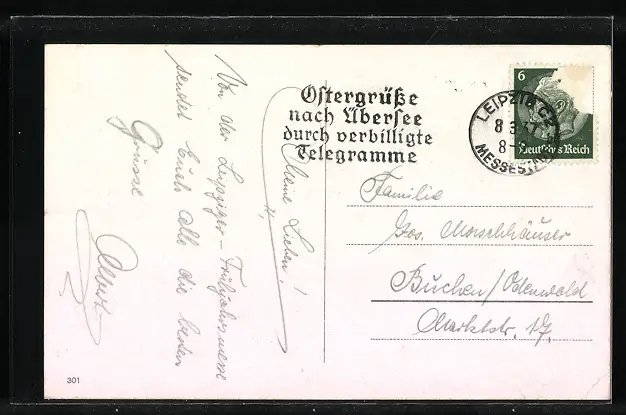 alte Ansichtskarte, gelaufen 1937, Briefmarke entfernt, rückseitig Oberflächenschaden, Eckknick li. oben, Stempelspur, guter Zustand