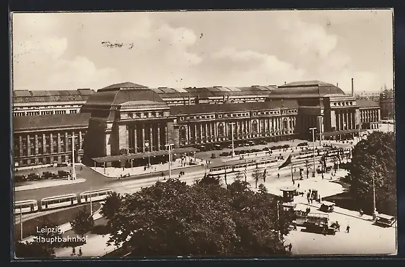 AK Leipzig, Hauptbahnhof mit Strassenbahn