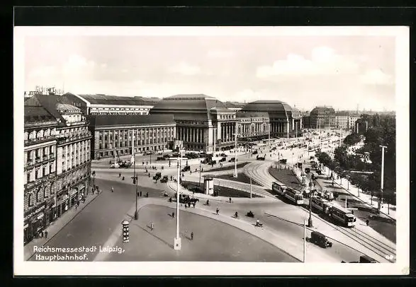 AK Leipzig, Hauptbahnhof und Strassenbahnen