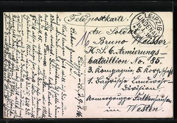 alte Ansichtskarte, gelaufen 1916, Eckknick li. unten, guter Zustand