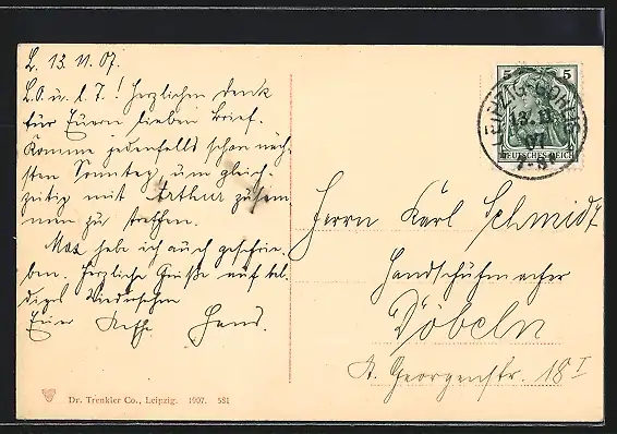 alte Ansichtskarte, gelaufen 1907, guter Zustand