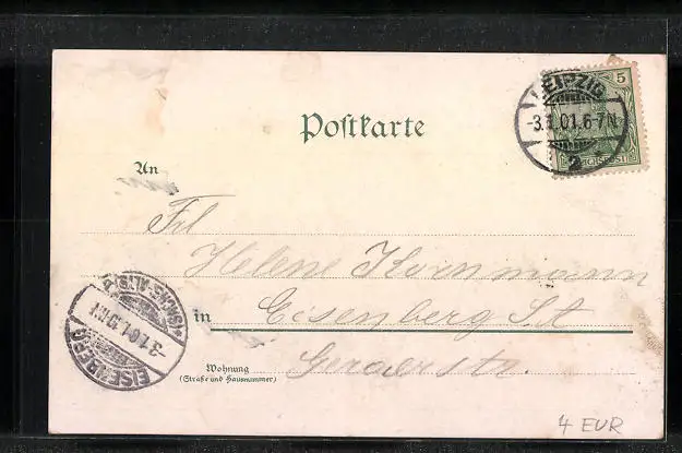 alte Ansichtskarte, gelaufen 1901, guter Zustand