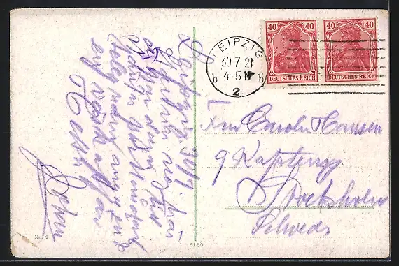 alte Ansichtskarte, gelaufen 1921, Eckknick re. unten, guter Zustand