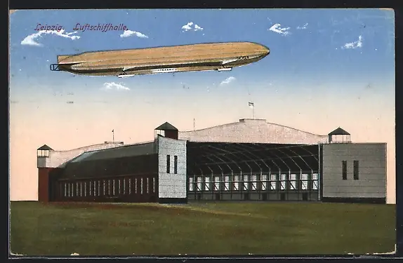 AK Leipzig, Luftschiffhalle mit Zeppelin