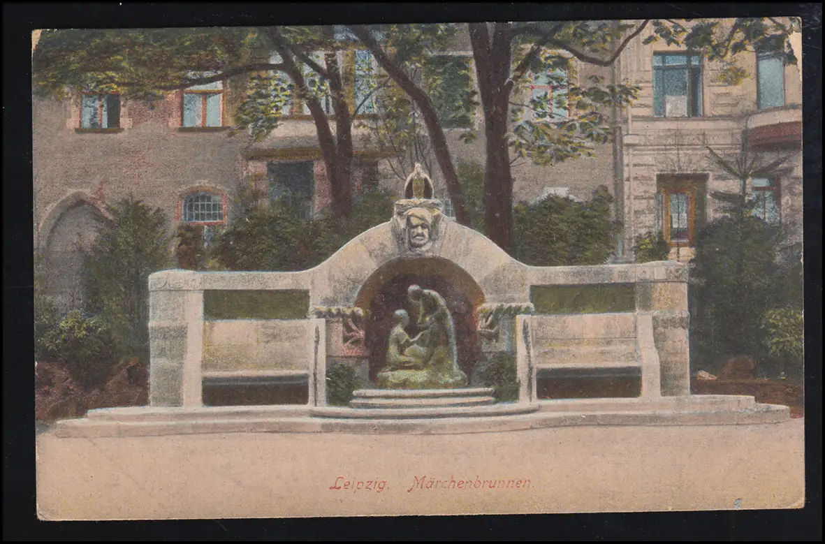 AK Leipzig: Märchenbrunnen, als Feldpost LEIPZIG-GOHLIS 8.10.1916