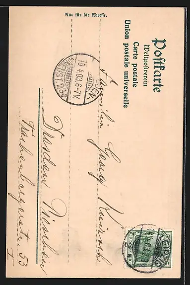 alte Ansichtskarte, gelaufen 1903, guter Zustand