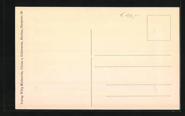 Personenbezogene Daten auf der Rückseite der Karte wurden durch blauen Textmarker unkenntlich gemacht. Die blauen Stellen sind auf die Vorderseite durchgeweicht und wirken sich negativ auf das Postkartenfoto aus