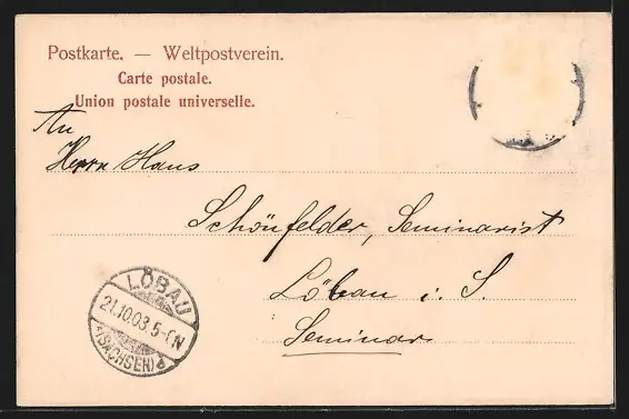 alte Ansichtskarte, gelaufen 1903, Briefmarke entfernt, guter Zustand