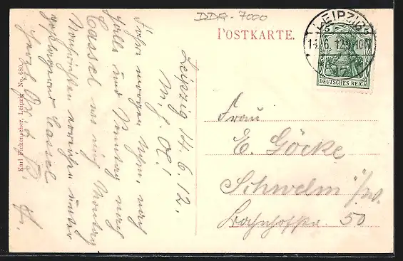 alte Ansichtskarte, gelaufen 1912, Stempelspur, guter Zustand