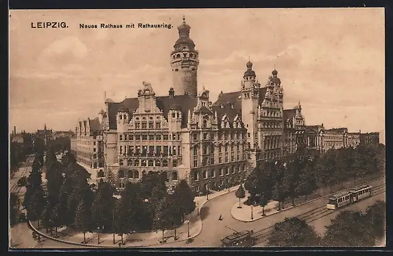 AK Leipzig, Neues Rathaus mit Rathausring, Strassenbahn