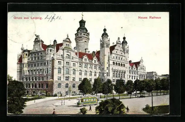 AK Leipzig, Neues Rathaus mit Strassenbahn