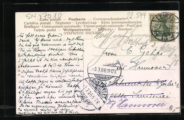 alte Ansichtskarte, gelaufen 1906, Stempelspur, guter Zustand