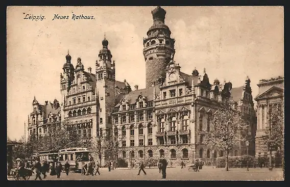 AK Leipzig, Neues Rathaus mit Strassenbahn
