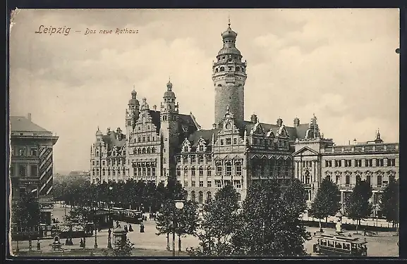 AK Leipzig, Neues Rathaus mit Strassenbahn