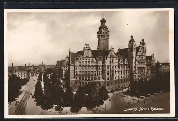 AK Leipzig, Neues Rathaus mit Strassenbahn
