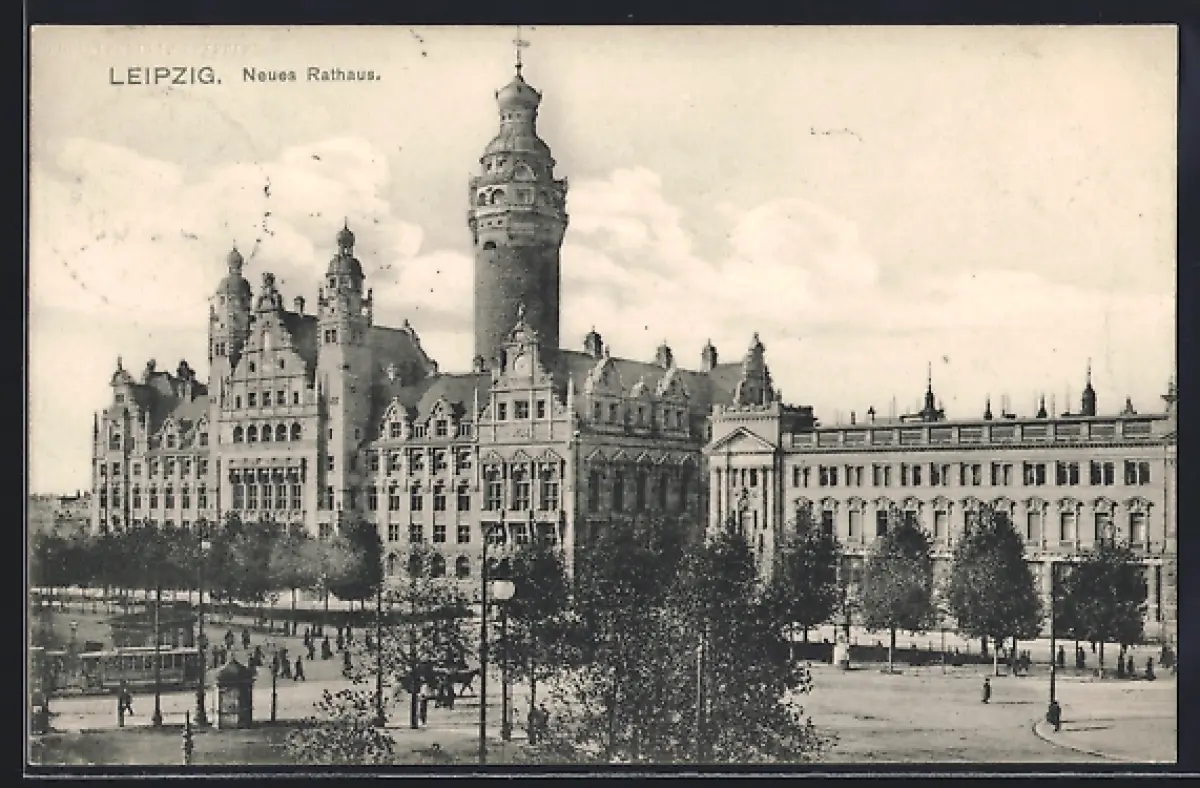 AK Leipzig, Neues Rathaus mit Strassenbahn