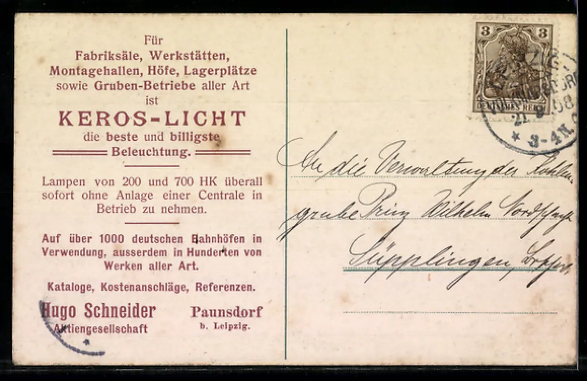 alte Ansichtskarte, gelaufen 1908, guter Zustand