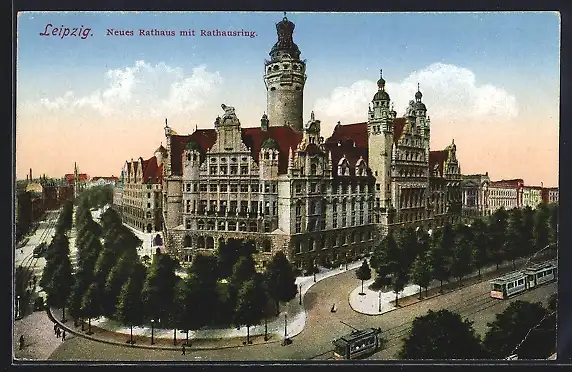AK Leipzig, Neues Rathaus und Rathausring mit Strassenbahn