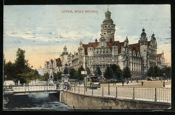 AK Leipzig, Neues Rathaus und Strassenbahn