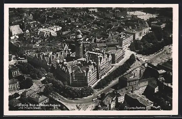 AK Leipzig, Neues Rathaus vom Flugzeug aus