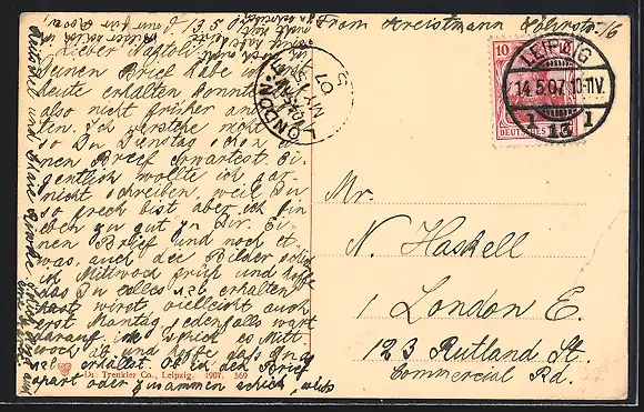 gelaufen 1907, Eckknick li. unten, Bugspur li. mittig, guter Zustand