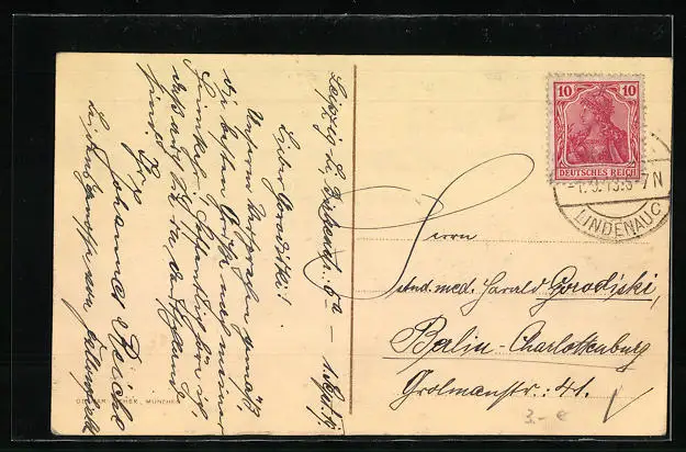 alte Ansichtskarte, gelaufen, Abriebspur re. unten, Eckknick li. unten, guter Zustand