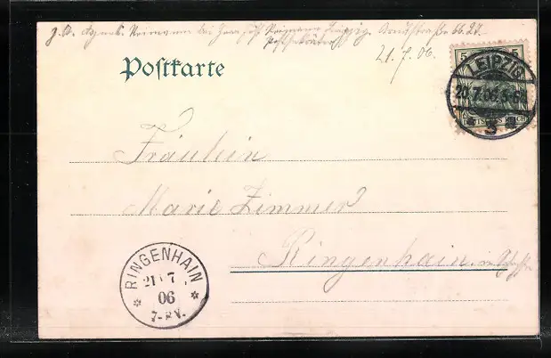 alte Ansichtskarte, gelaufen 1906, Stempelspur, guter Zustand