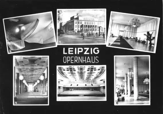 Ansichtskarte Leipzig Opernhaus, sechs Abb., gestaltet Erhaltung I-II postalisch gelaufen, gestempelt: Berlin, 7.9.66 Druckvermerk: 1966 Herstellungsland: DDR Verlag: Felix Setecki, Berlin