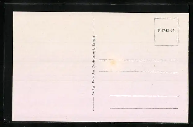 Personenbezogene Daten auf der Rückseite der Karte wurden durch blauen Textmarker unkenntlich gemacht. Die blauen Stellen sind auf die Vorderseite durchgeweicht und wirken sich negativ auf das Postkartenfoto aus